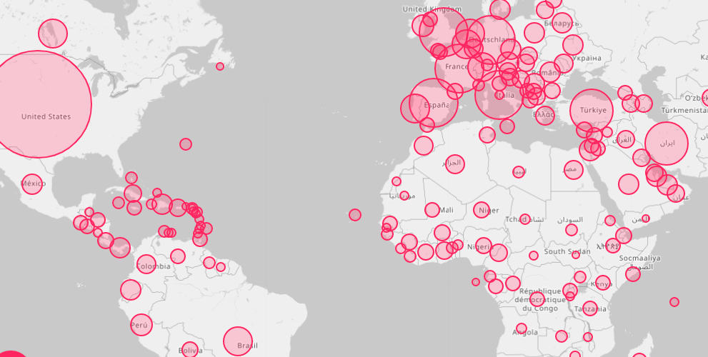 Mapa da COVID-19 no Mundo em tempo real